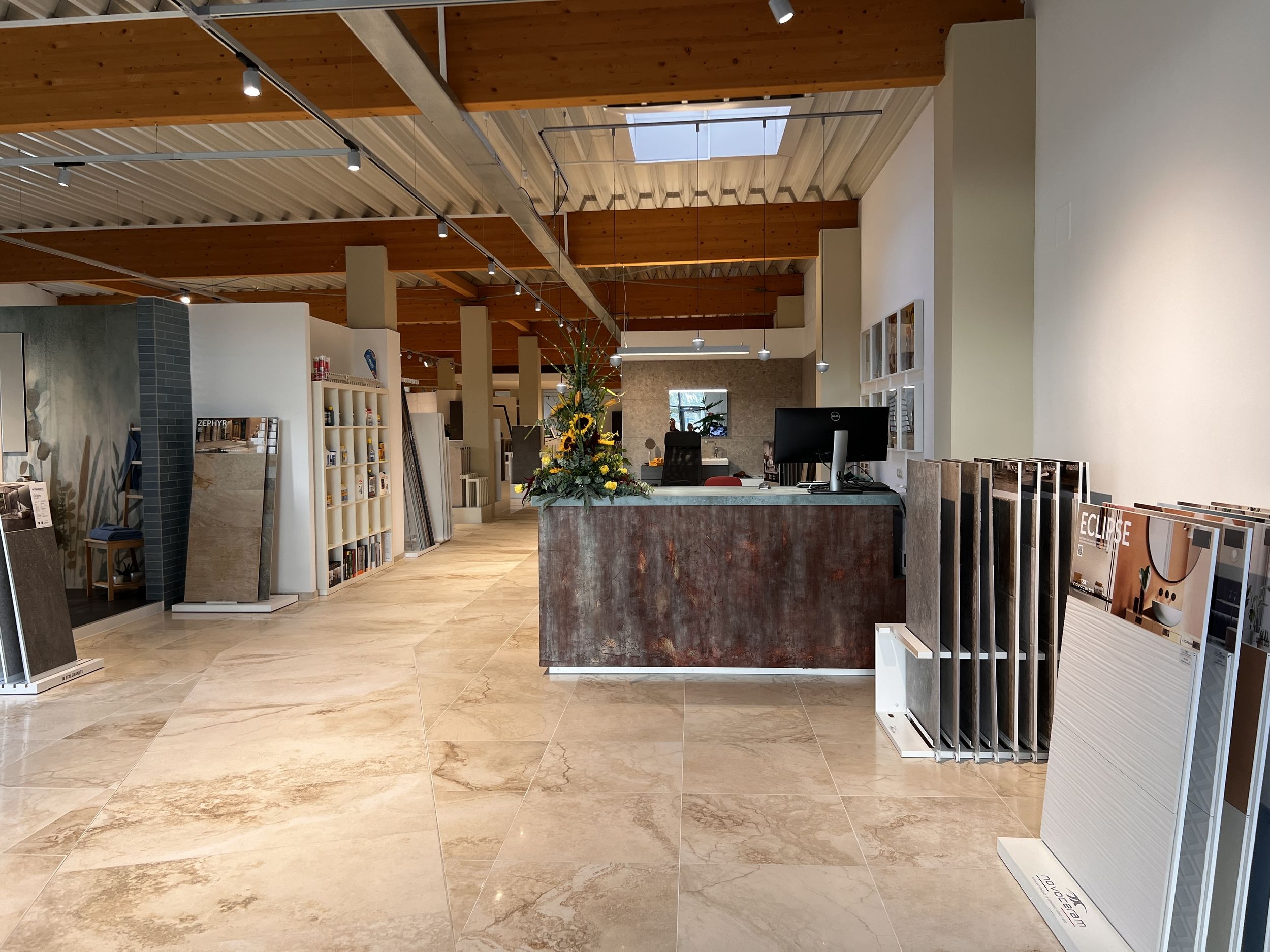 Der Vorteil der robusten Platten aus Feinsteinzeug liegt unter anderem in der flexiblen Art der Verlegung.
